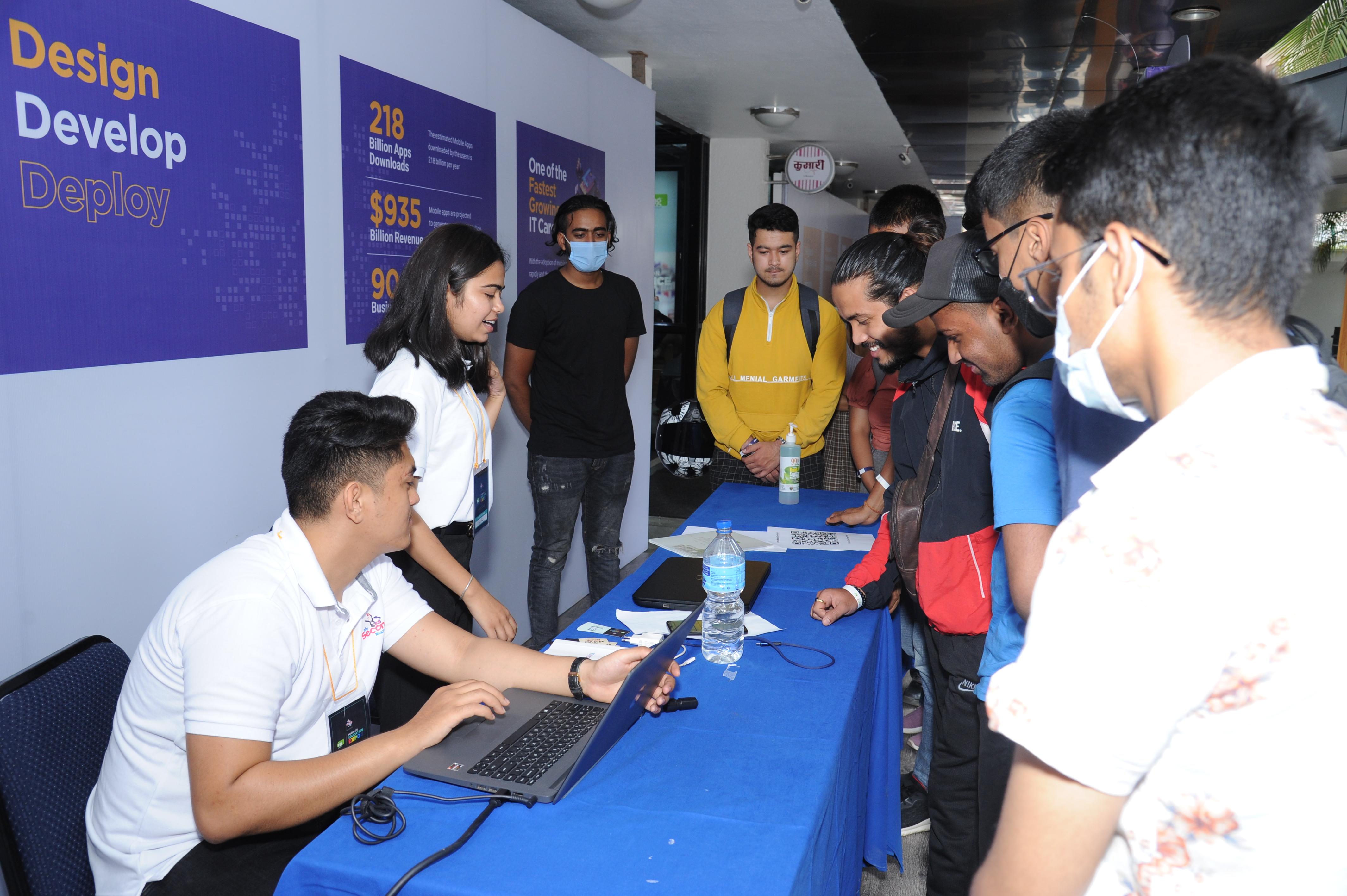 Furthermore, web design is considered one of the most crucial skill sets in the tech and business fields for IT students since the website reflects brand recognition. In the "I am a Programmer" stall, students got a taste of what it's like to work as a developer. There were several other IT-related stalls like, "I am an Ethical Hacker," "I am an AI Developer," and so on which aided students on how to safeguard the data and communicate with others across a network.